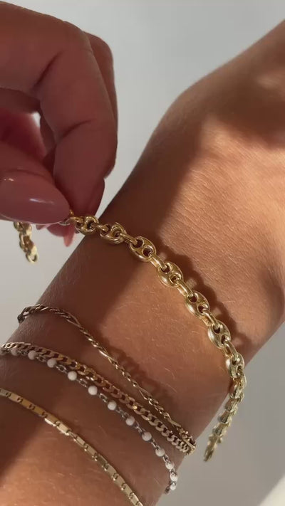 Choose from solid gold, sterling silver, or goldfill chains, custom-fitted and seamlessly welded with our signature micro-laser technique. Add a charm or engraving for a personal touch! Options include bracelets, anklets, necklaces, rings, and even hand chains. Clasps available for the commitment-weary.
