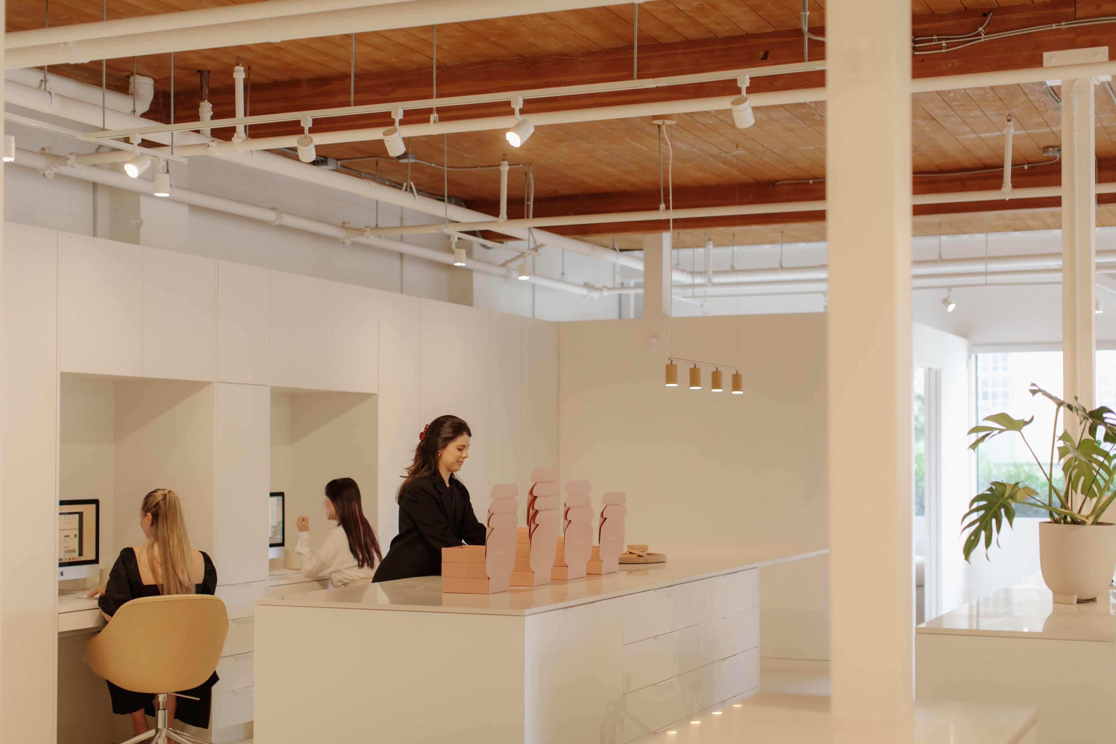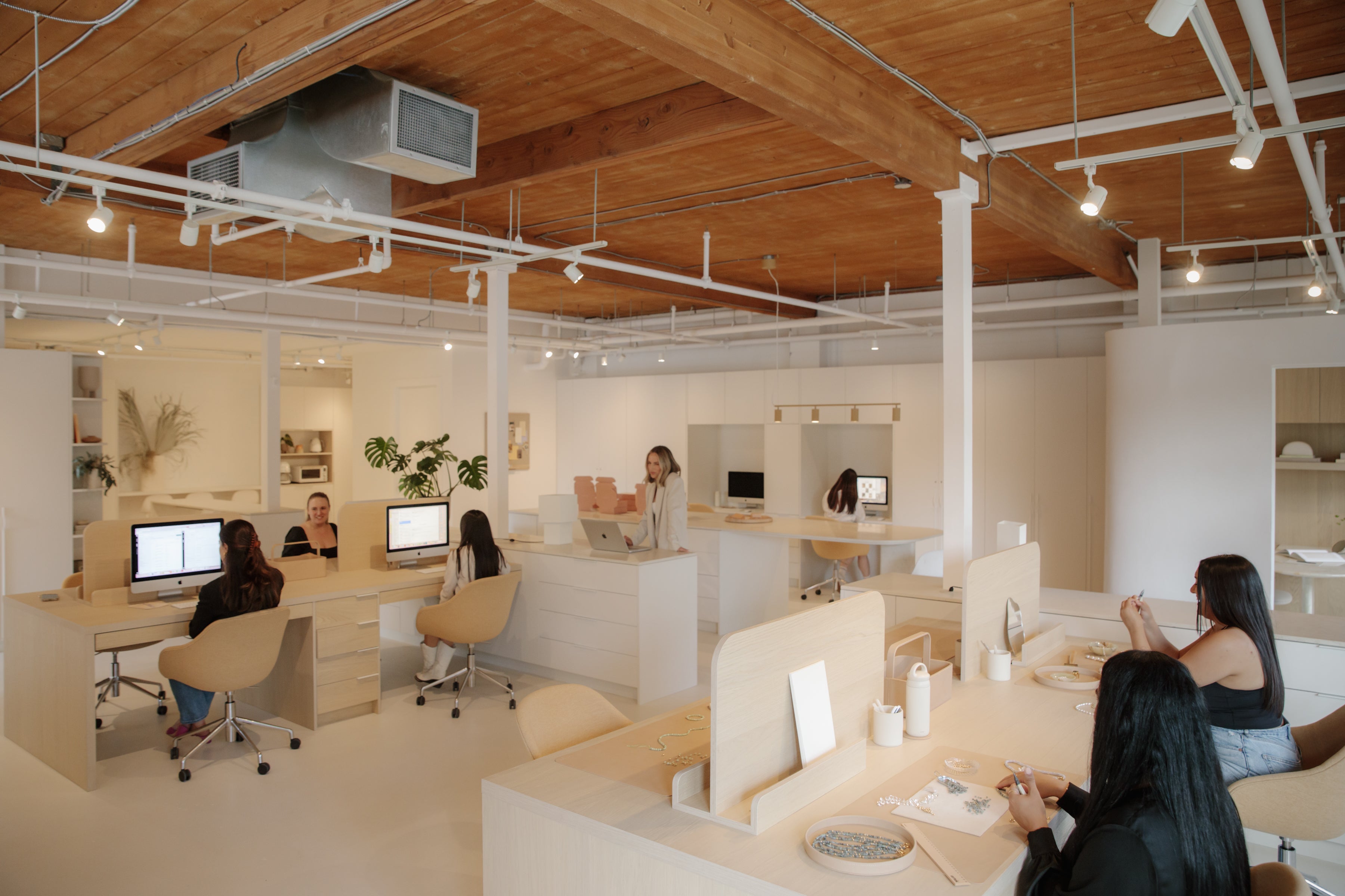 You’ll find our flagship retail location where you can take a glimpse into our manufacturing studio. Touches of natural stone, soaring ceilings, and bright light is where you'll find a medley of collaborative brainstorming, clicks of the camera, and the light taps of gold being hammered.
