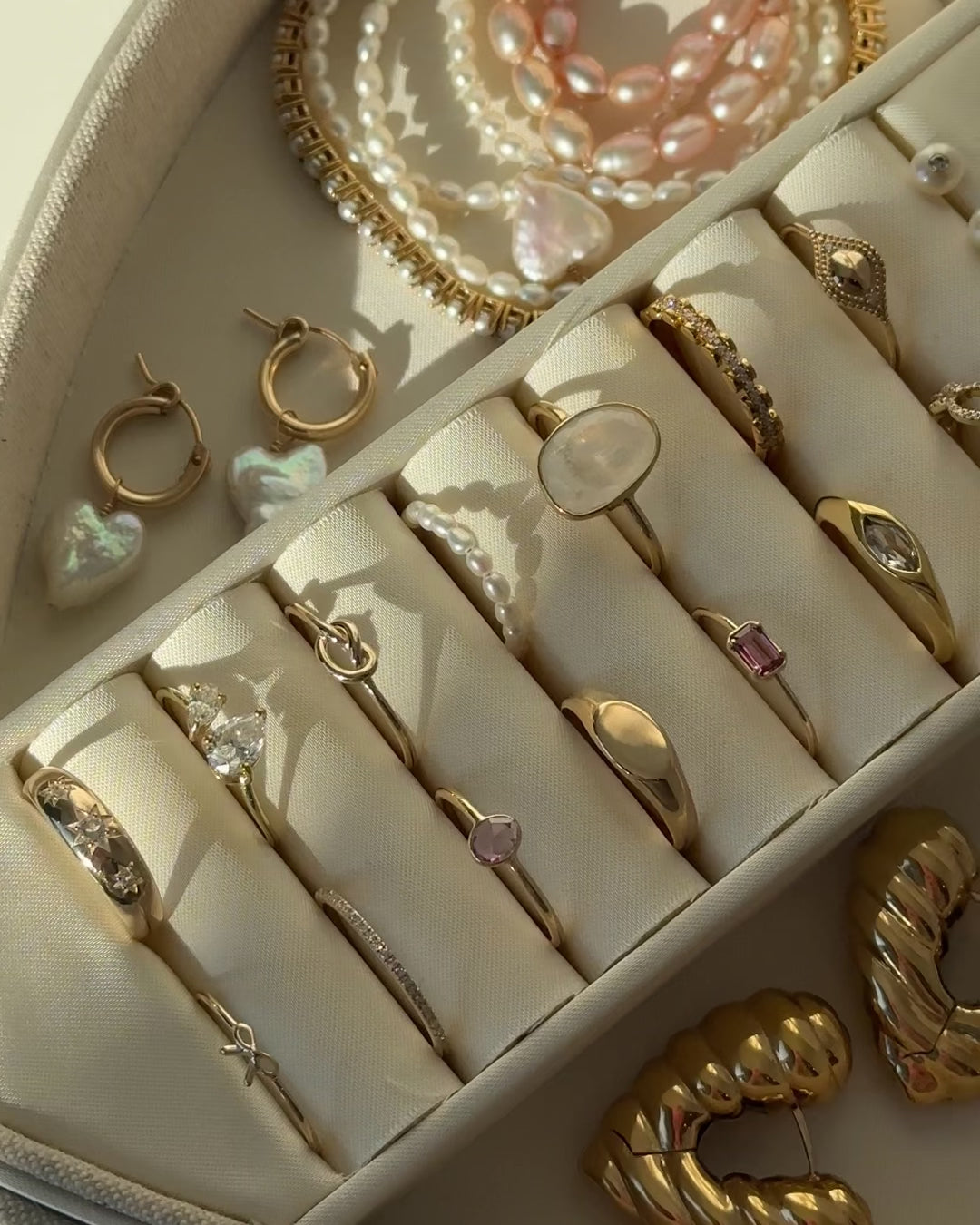Fall in love with our Heart Jewelry Box. Crafted with soft linen and luxurious satin interior, this adorable box is designed to protect and organize your most cherished treasures. With its thoughtful two-level design, it offers 6 deep pockets and a 16-piece ring holder, so there is a perfect place for every jewel. Add a personal touch with a custom name or monogram engraving on top!