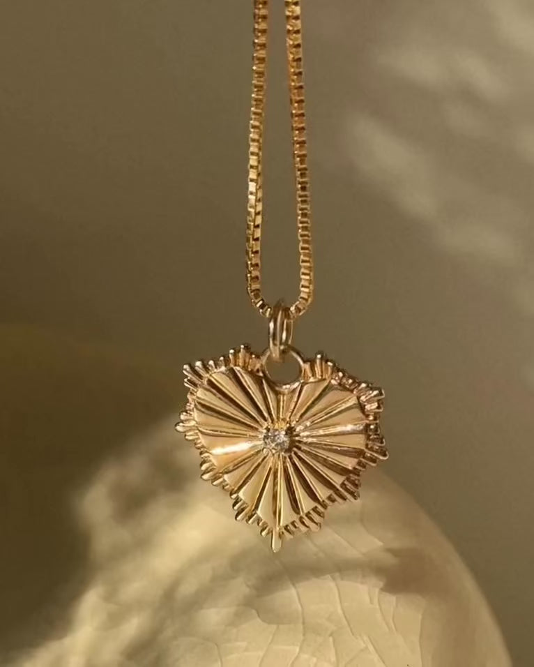 Get ready to glow with our Radiating Heart necklace! This vintage-inspired piece perfectly reflects the sunlight, so you’ll be shining all day long.