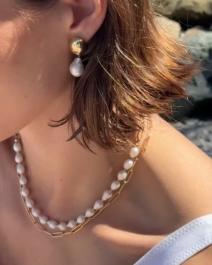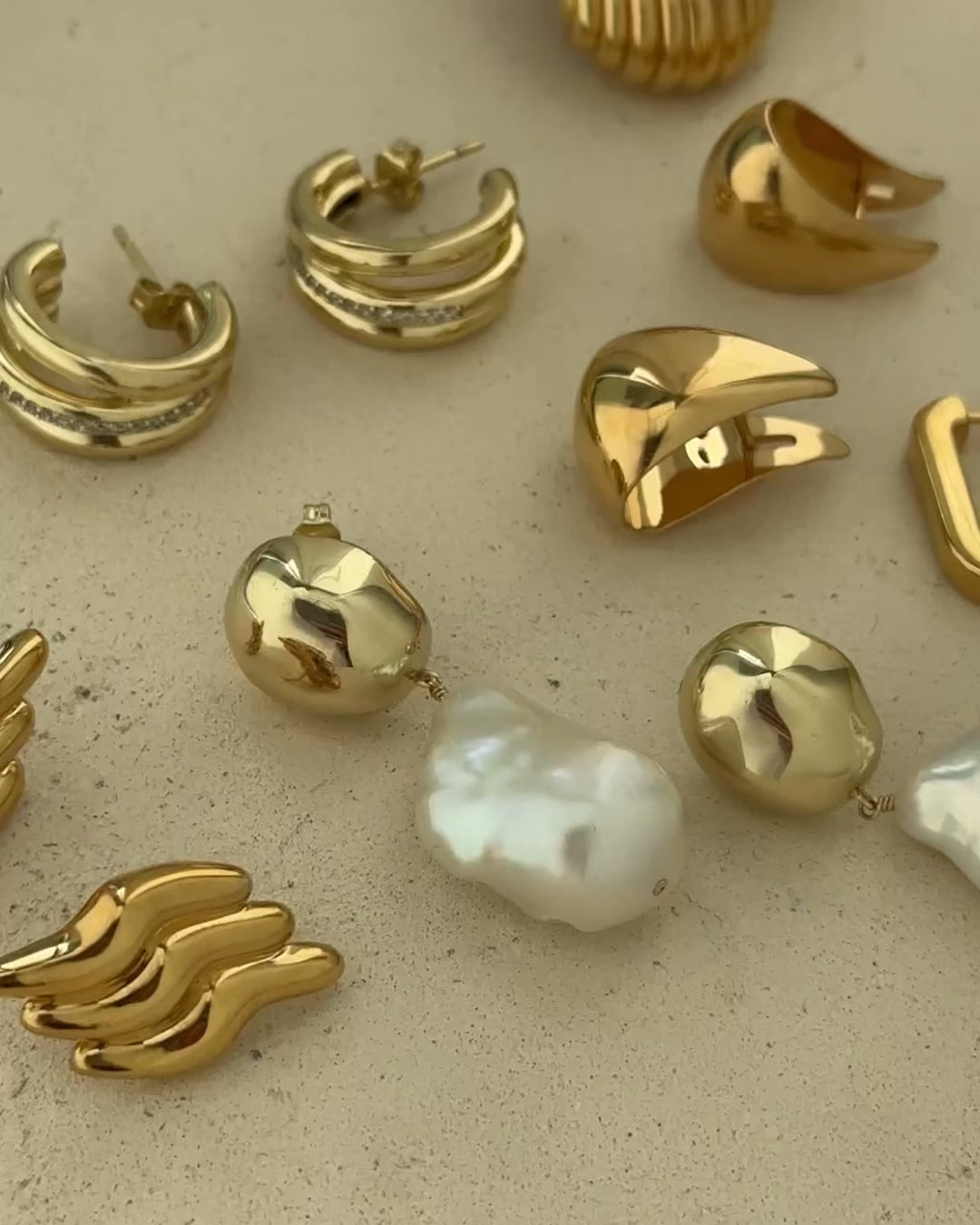 Our Rosette earrings pair sculptured gold with natural pearls. The result is a bold, organic piece. These earrings will carry you from end of summer days, to crisp cashmere sweater weather, to formal holiday evenings.
