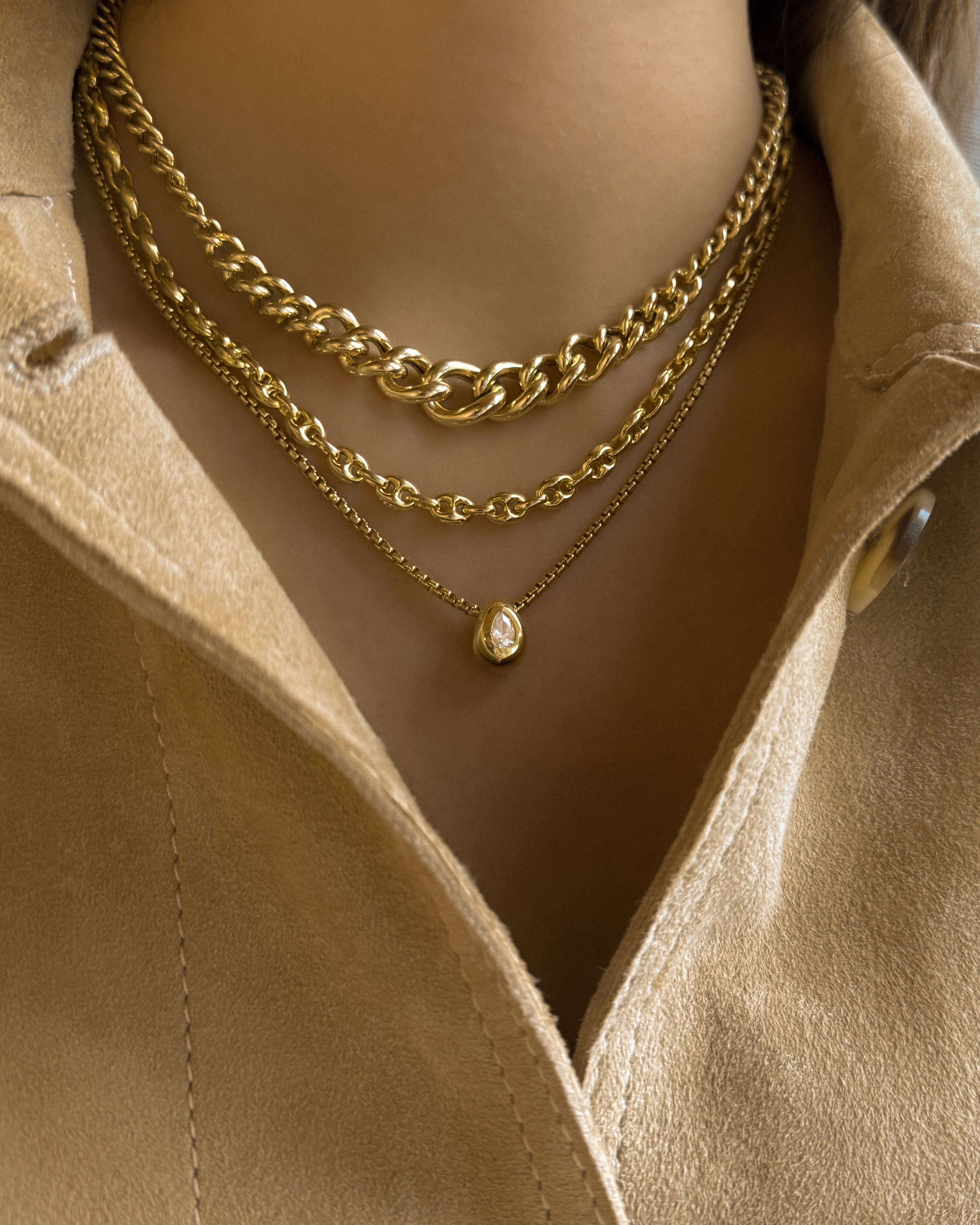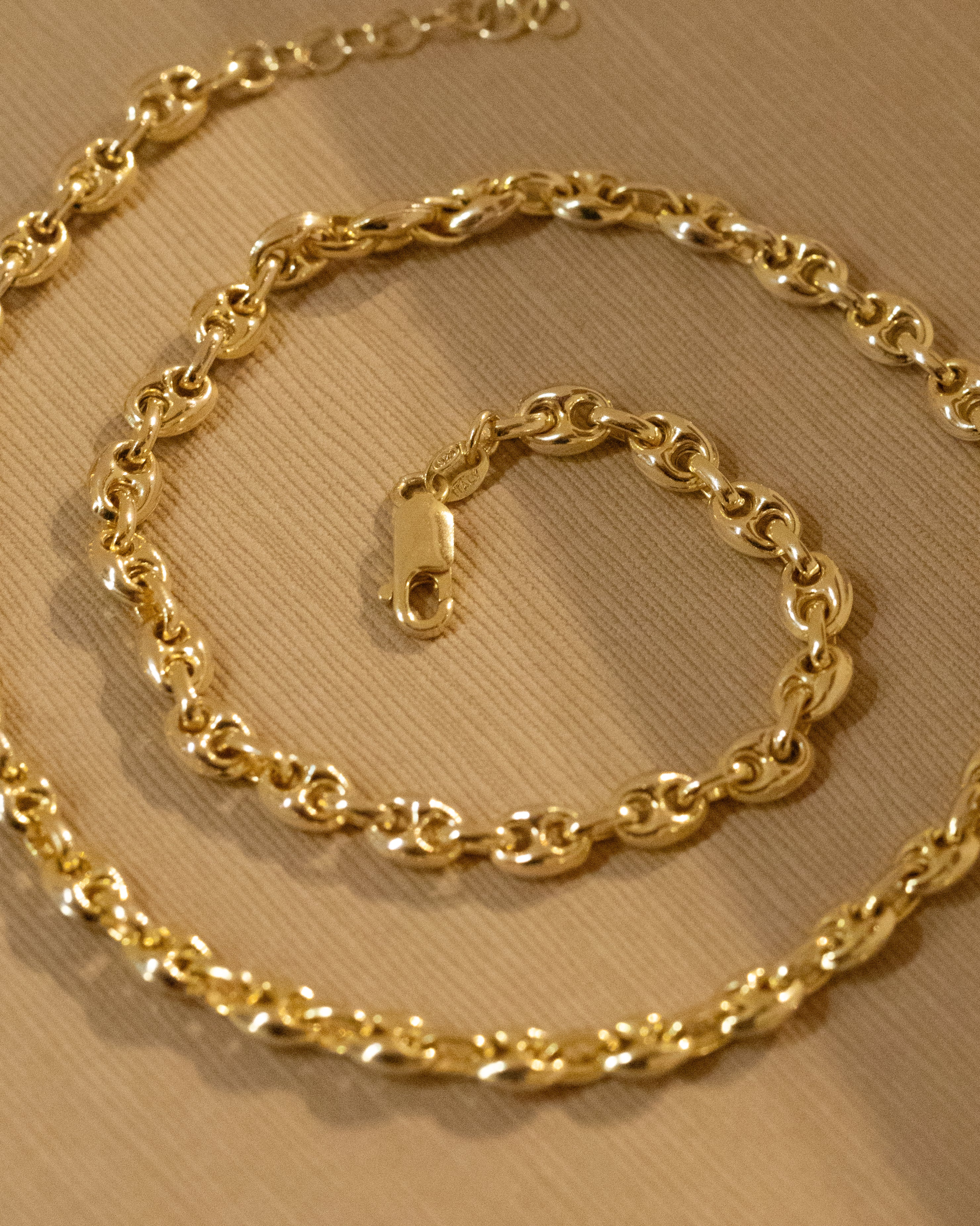 Choose from solid gold, sterling silver, or goldfill chains, custom-fitted and seamlessly welded with our signature micro-laser technique. Add a charm or engraving for a personal touch! Options include bracelets, anklets, necklaces, rings, and even hand chains. Clasps available for the commitment-weary.
